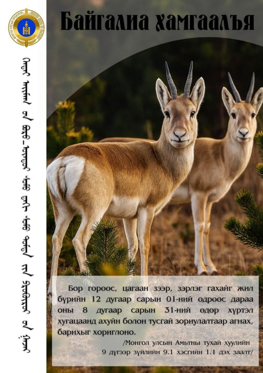 Хэнтий аймгийн Бор-Өндөр сум дахь сум дундын прокурорын газраас Эрүүгийн хуулийн 24.5 дугаар зүйлд заасан Хууль бусаар ан агнах гэмт хэргээс урьдчилан сэргийлэх чиглэлээр цуврал зурагт хуудас гаргалаа.